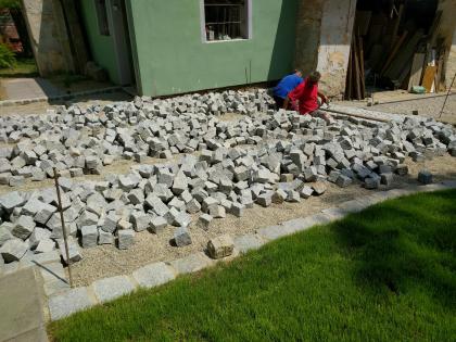 - Realizované práce: 1 028 879 Kč (90 321 Kč zůstává na dokončení dláždění)