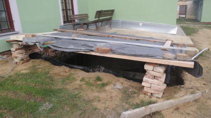 - Realizované práce: 618 813,10 Kč (74 664,90 Kč zůstává na další opravy [nestačilo se dokončit dláždění a finální úpravy ploch, zvl. trávníků]