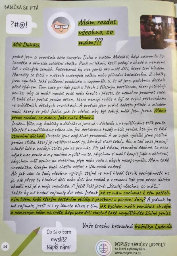 Písnička (převzato z aktuálního čísla časopisu DUHA)