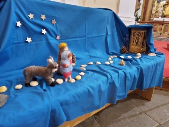 Na cestě, kterou jsme pro vás postavily v našem kostele a který můžete na fotografiích sledovat, jsou naši poutníci již o kus dál. Aby lépe viděli na cestu, na nebi se jim postupně rozsvěcují hvězdy.
