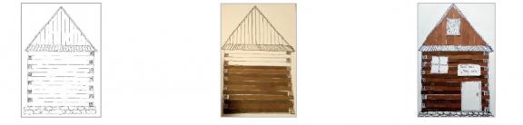Dům s postupným vybarvováním (po splnění úkolu vymalujete jeden trám), nalepíte dřívko od nanuku, ...). Pod fotografie naleznete k vytištění a vybarvení obrys domu s pevnými kamennými základy.